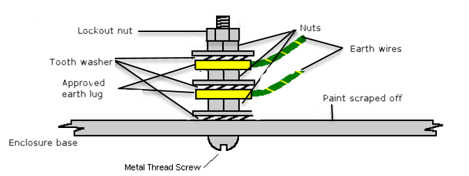 on the enclosure base must be permanently connected to the building earth using the appropriate grounding wire, when an AC power supply is connected inside the enclosure. The accessory kit includes a 12AWG grounding wire for branched circuits up to 20A.