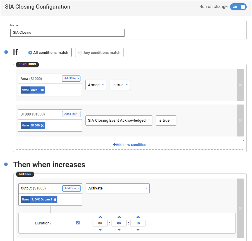 Alarm sounding device - Output used to connect alarm sounding device must be operated continuously for a minimum of 15 minutes after an alarm is activated.
