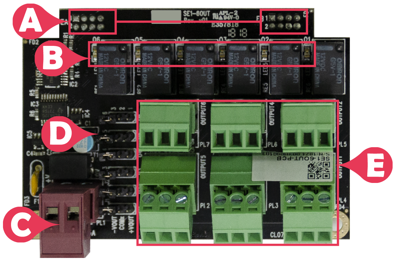 Label #E Relay outputs 1 to 6 (PL2 and PL7) |