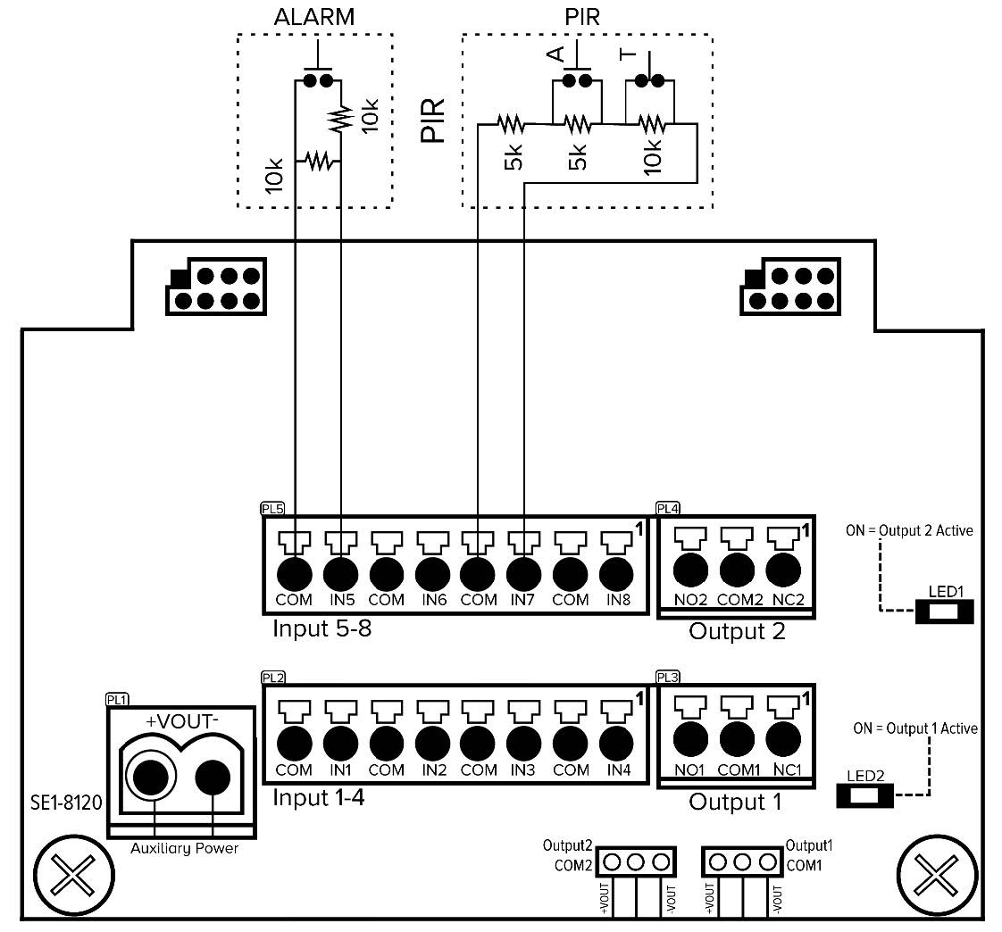 Label #C End-of-line (EOL) monitored and analog inputs 5 to 8 (PL2) |