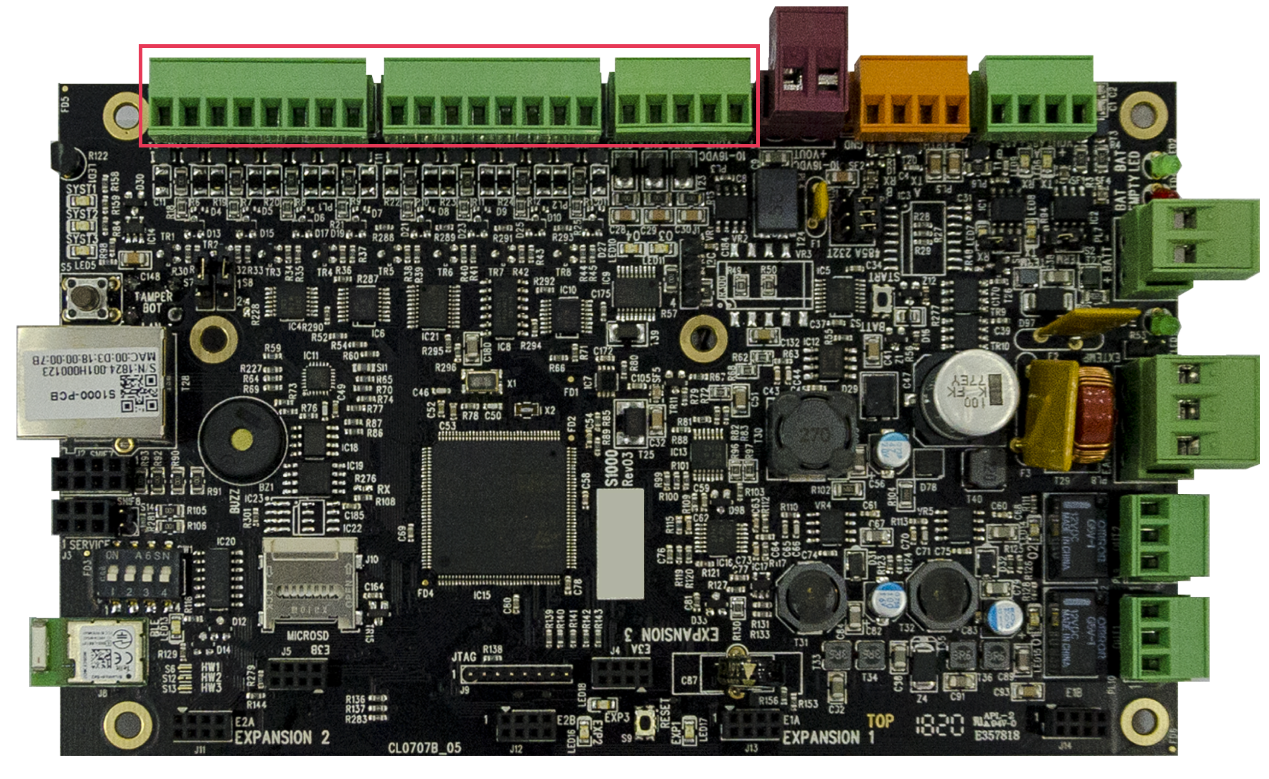 You can customize your system using configurable alarm, access control and building monitoring data input. Connect IO Devices at PL1, PL2 and PL3.
