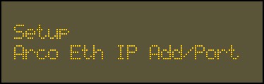 Use the 2 key and 8 key to go to the Arco Eth IP Add/Port option.