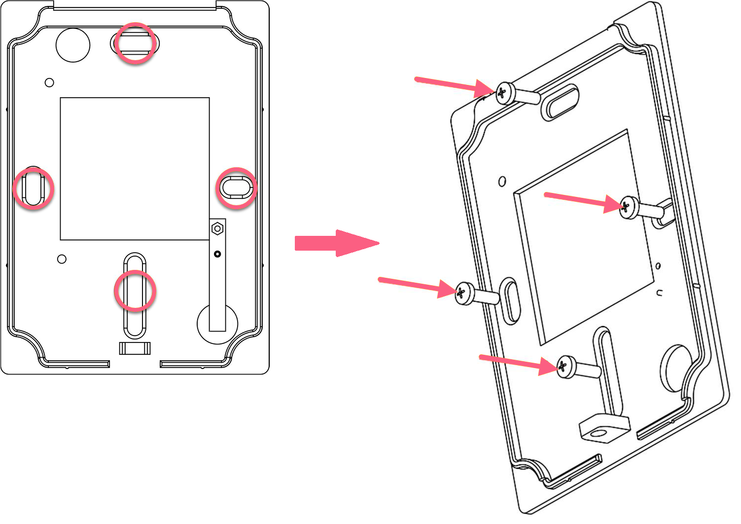 Secure the top cover of the keypad to the base plate by fastening the security screw at the base of the keypad.