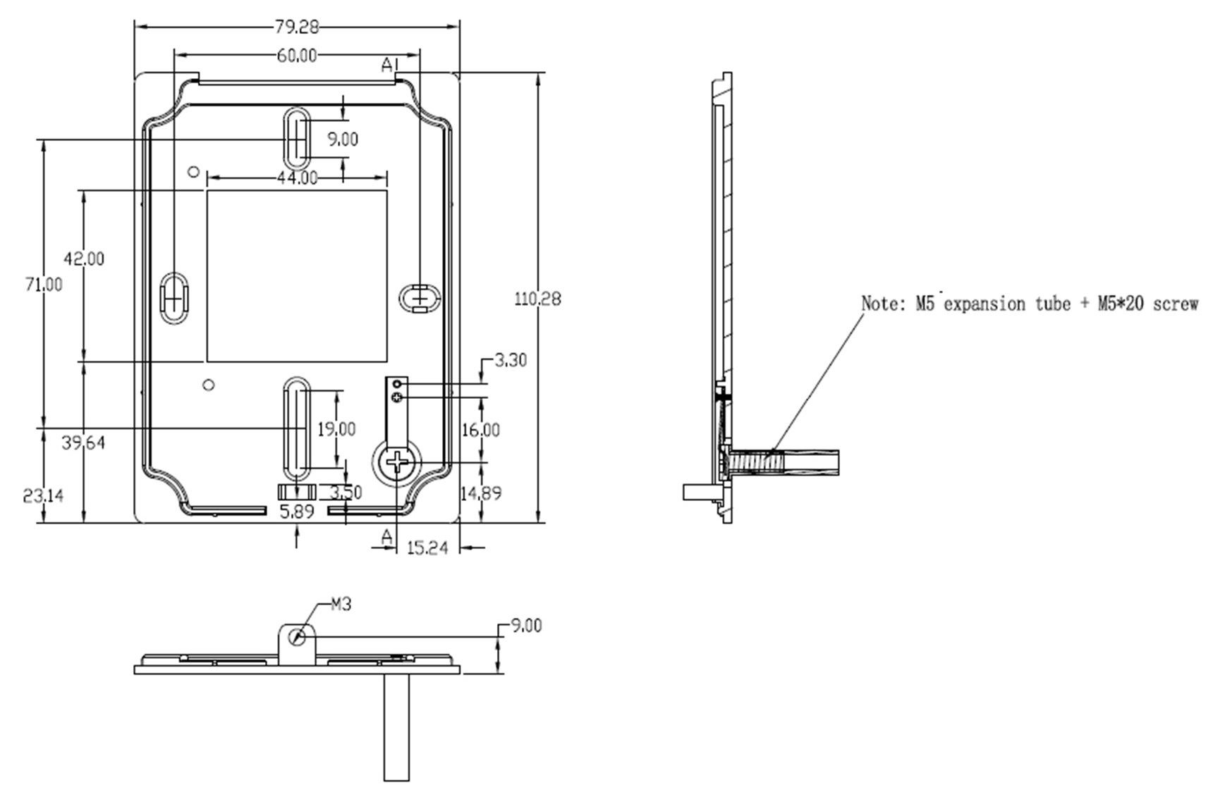 Fasten the plastic base plate to the wall (or other intended surface) using 2 or 4 screws.