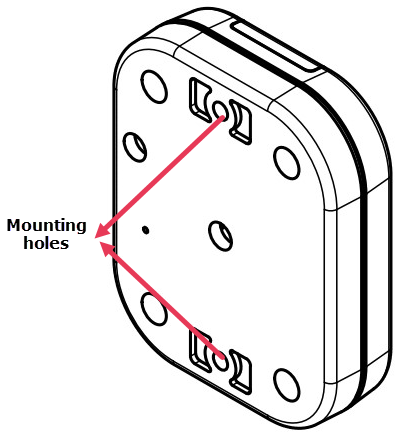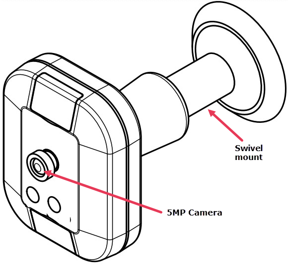 The Mini Camera enclosure has two flaps that open to reveal two mounting holes. Use the mounting holes to attach the Mini Camera to a surface. If using the swivel mount, use the supplied screws to attach the Mini Camera on the swivel mount to a surface.
