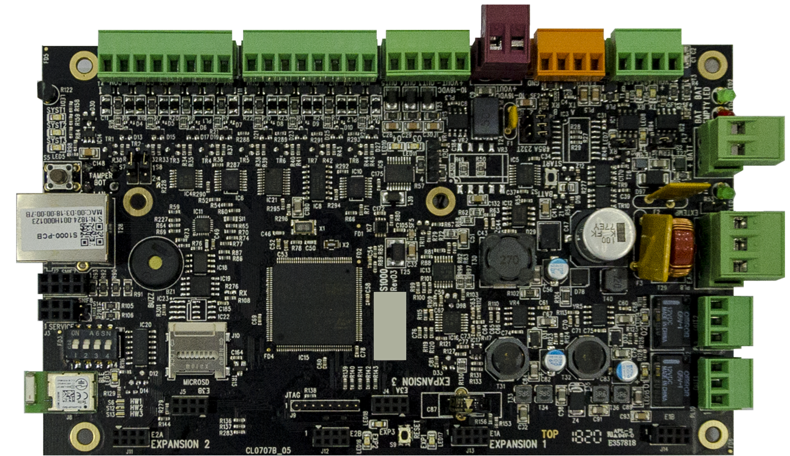 For access control applications, the Remote IO supports two Wiegand readers. If additional readers are required, the Card Reader Interface expansion cards (SE1-CRI-PCB) can be added, allowing support for up to 8 readers in total. The board also supports up to 8 OSDP readers connected through its PL6 port.