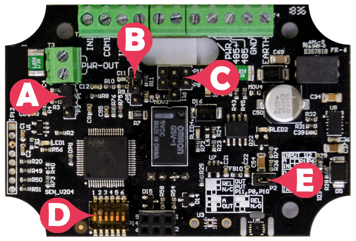 DIP switch P1 Switch 1 to Switch 4: set OSDP address on the bus Switch 5 to Switch 6: Unused |