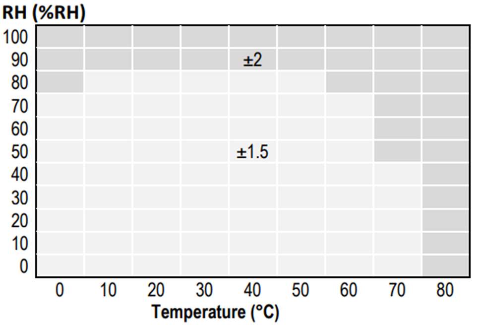 - Typical accuracy of 1.5% RH at 0.2°C (32.4°F).